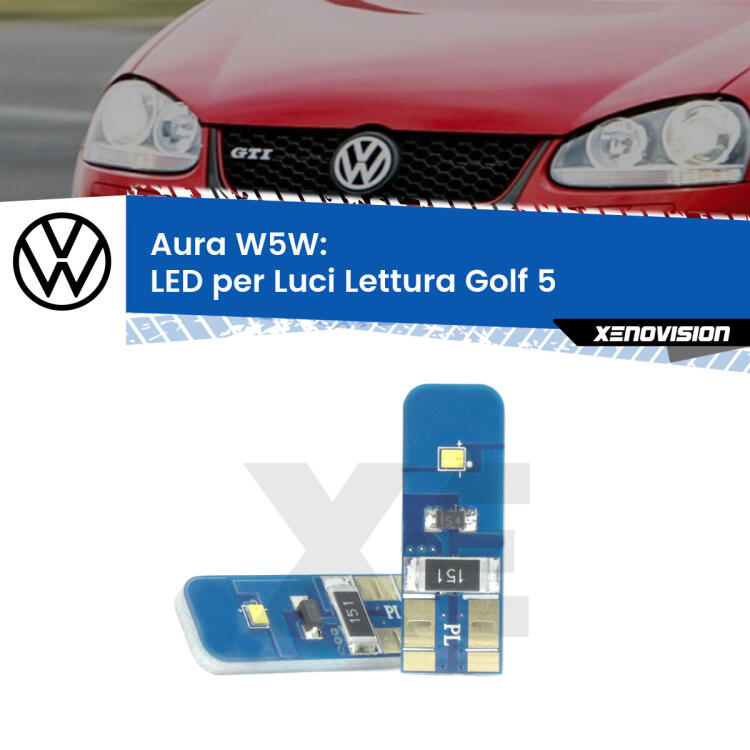 Aura W5W: LED per Luci Lettura Golf 5 2003 -2009 FINE SERIE: NO GARANZIA