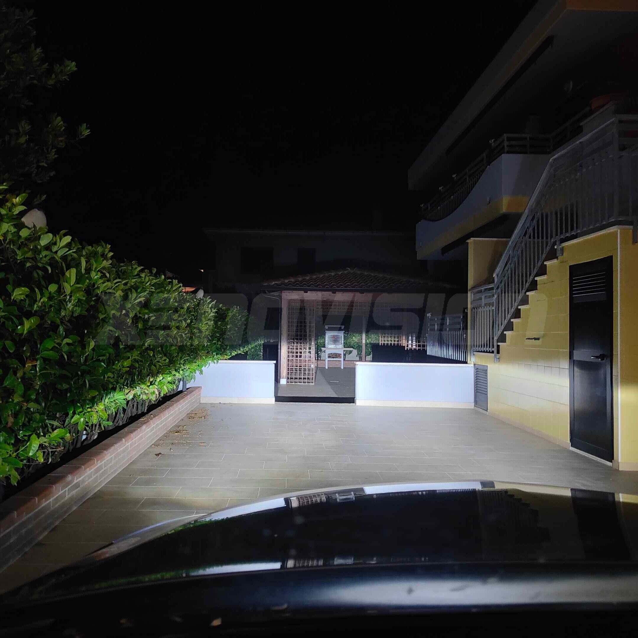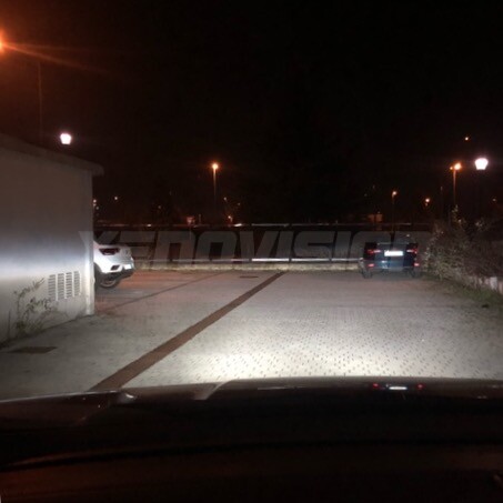 Il fascio di luce risulta omogeneo ed intenso, no coni d'ombra e segue il classico taglio luminoso del lenticolare con la tipica colorazione bianco ghiaccio dei led di primo equipaggiamento.