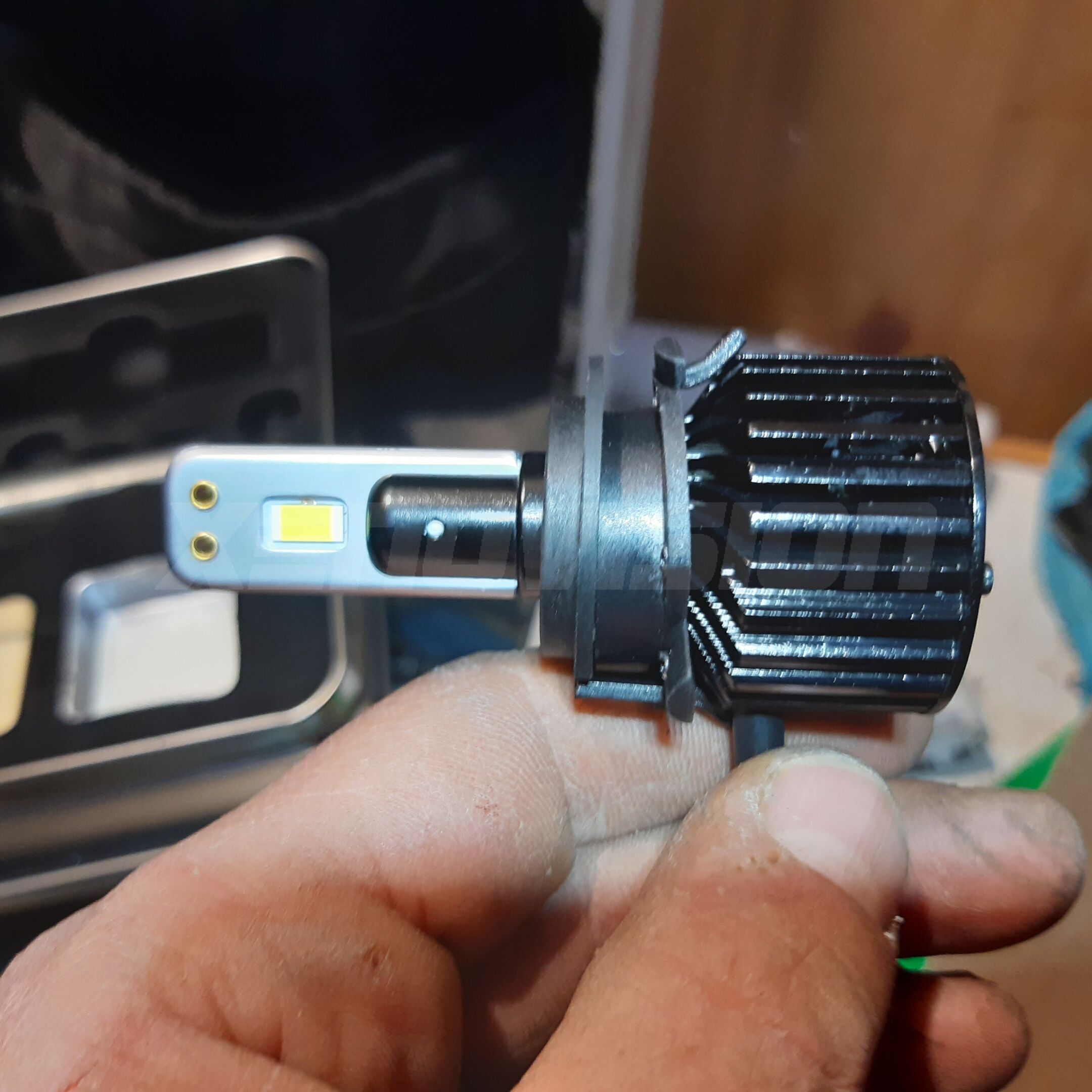 Si noti come le alette dietro, per ruotare l adattatore nel faro, si piegano sul dissipatore